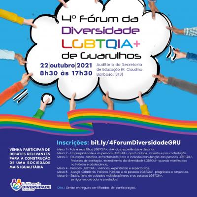 O auditório da Secretaria de Educação recebe nesta sexta-feira (22) a 4ª edição do Fórum da Diversidade LGBTQIA+. O evento, que acontece das 8h30 às 17h30, é iniciativa da Subsecretaria de Diversidade da Prefeitura de Guarulhos. Serão seis mesas temáticas que contarão com a presença de especialistas no tema.