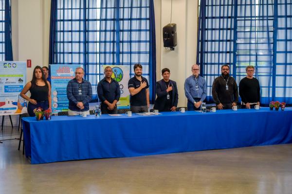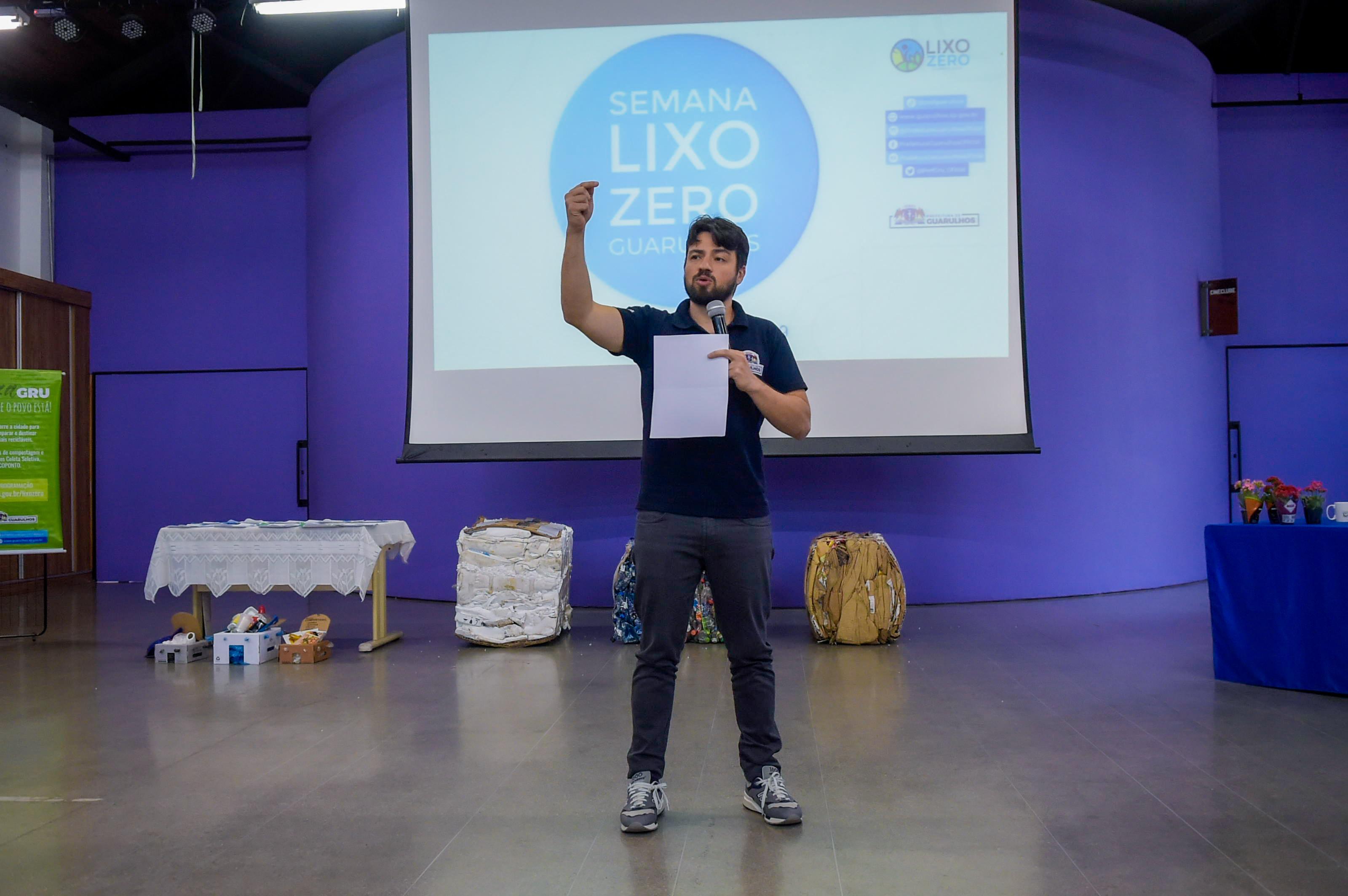 A 6ª. Semana Lixo Zero Guarulhos, evento que reúne as melhores ações e projetos para a redução do volume de resíduos sólidos gerados na cidade, foi aberta oficialmente nesta segunda-feira (24), no auditório do Centro Municipal de Educação Adamastor, no Macedo. O evento teve público diversificado, que assistiu a palestras, exposição de artesanato feito com reaproveitamento de resíduos têxteis, oficina de costura reta com reaproveitamento de resíduos, apresentação do coral formado por alunos da Escola da Prefeitura de Guarulhos Celso Furtado e entrega de chancelas Lixo Zero.