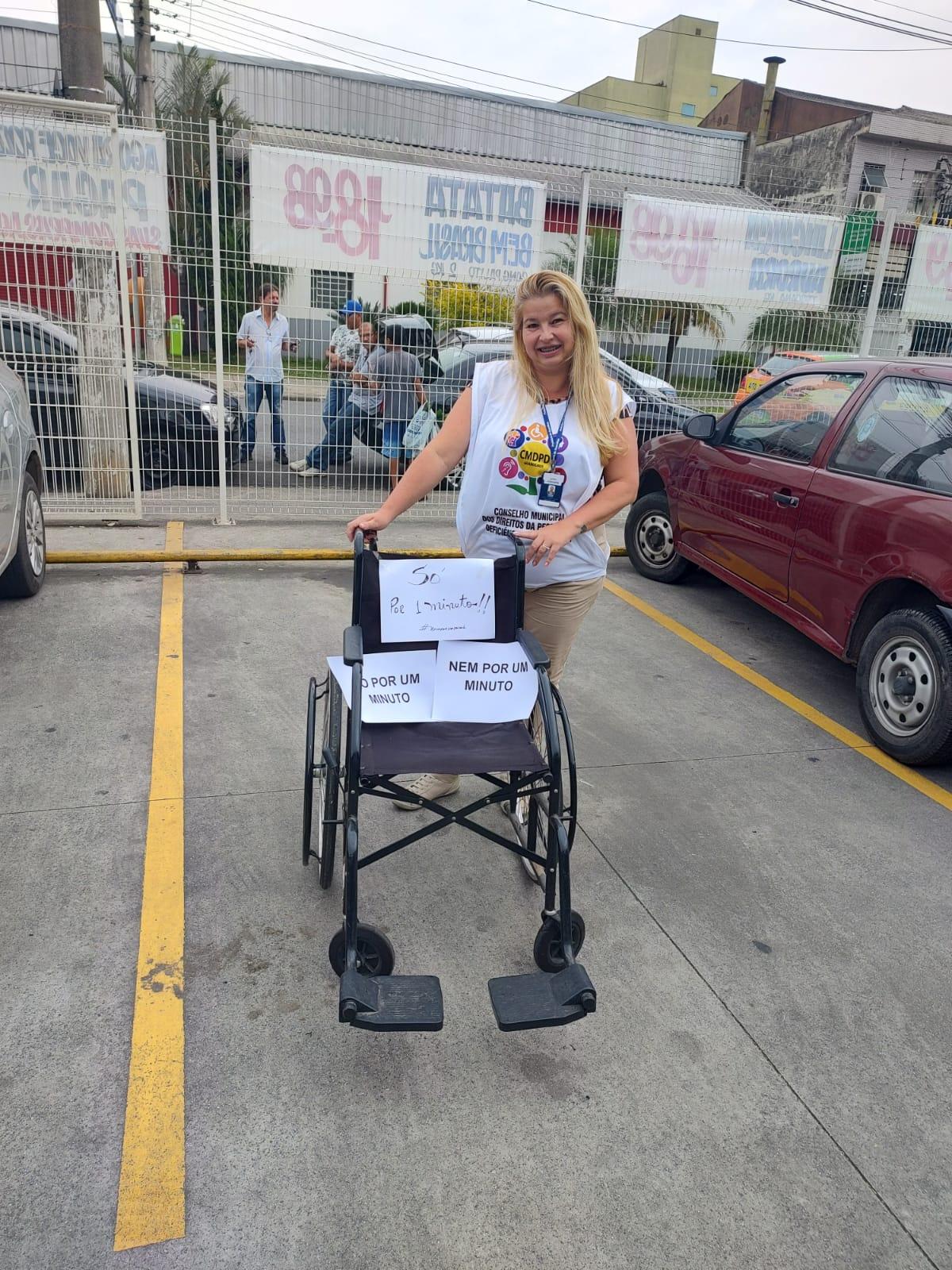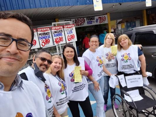 O Conselho Municipal dos Direitos da Pessoa com Deficiência (CMDPD) de Guarulhos realizou no último dia 21 uma ação educativa e prática no Paço Municipal e no Supermercado X, ambos no Bom Clima. O objetivo foi conscientizar a população sobre a importância do respeito ao uso das vagas exclusivas para o segmento.