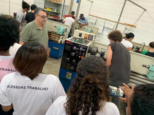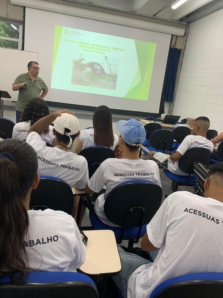 Um grupo de 25 jovens com idades entre 16 a 23 anos, que participaram da oficina do Acessuas Trabalho (Programa Nacional de Promoção do Acesso ao Mundo do Trabalho), e algumas mães acompanhantes, visitou nesta quarta-feira, dia 30, o Instituto Federal de Educação, Ciência e Tecnologia de São Paulo/Campus Guarulhos (IFSP/Guarulhos), na Vila Rio de Janeiro.