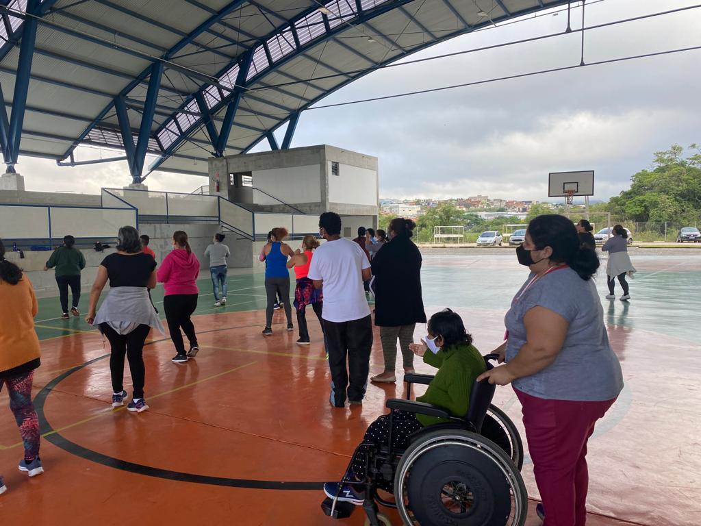Um grupo de nove assistidos pelo Serviço de Acolhimento Institucional para Jovens e Adultos com Deficiência em Residência Inclusiva oferecido pela Prefeitura, iniciou a prática de atividades físicas, de dança e culturais no CEU Bonsucesso. Com idades entre 20 e 53, esta é primeira turma de assistidos do serviço a realizar exercícios na unidade.