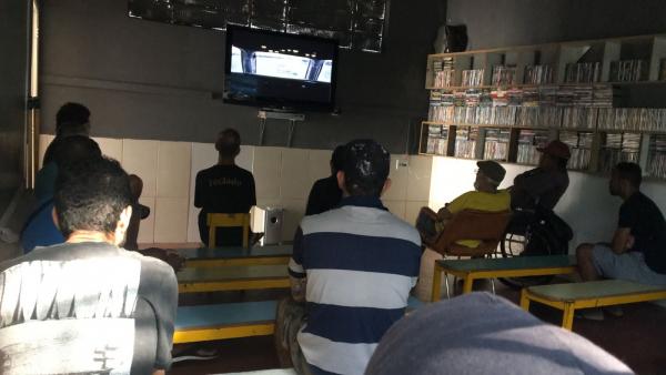 O Serviço de Acolhimento Institucional para Pessoas Adultas em Situação de Rua, unidade Centro, inaugurou nesta quinta-feira (21) o Cine Retomando, espaço de cinema destinado aos frequentadores do local com o objetivo de, além de gerar entretenimento, promover discussões de temas importantes como ressocialização, abuso de substâncias químicas e suas consequências.