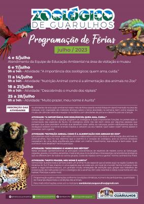Para ajudar a entreter a criançada durante as férias, entre terça e sexta-feira, dias 18 a 21, acontece a atividade “Descobrindo o mundo dos répteis”. Nos encontros, a equipe do zoo vai mostrar as principais características de tartarugas, cágados, jacarés, crocodilos e serpentes com seus ricos detalhes e características biológicas que os diferenciam de todos os outros grupos de animais.