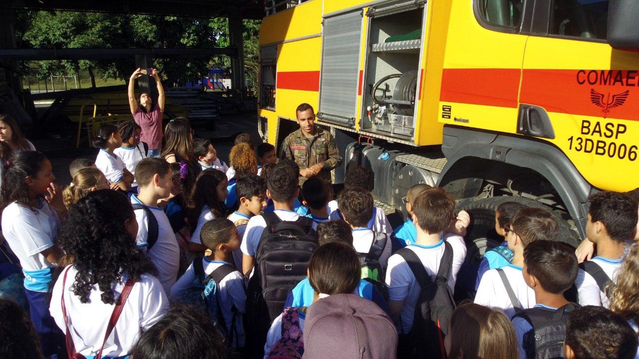 Na oportunidade, os alunos puderam conhecer o trabalho da Base e os espaços onde as aeronaves ficam estacionadas. As crianças tiveram pequenas palestras com o Corpo de Bombeiros e Canil da BASP, ocasião em que os adestradores mostraram como os cães obedecem aos comandos e fizeram uma simulação dos animais em situação de procura por drogas.
