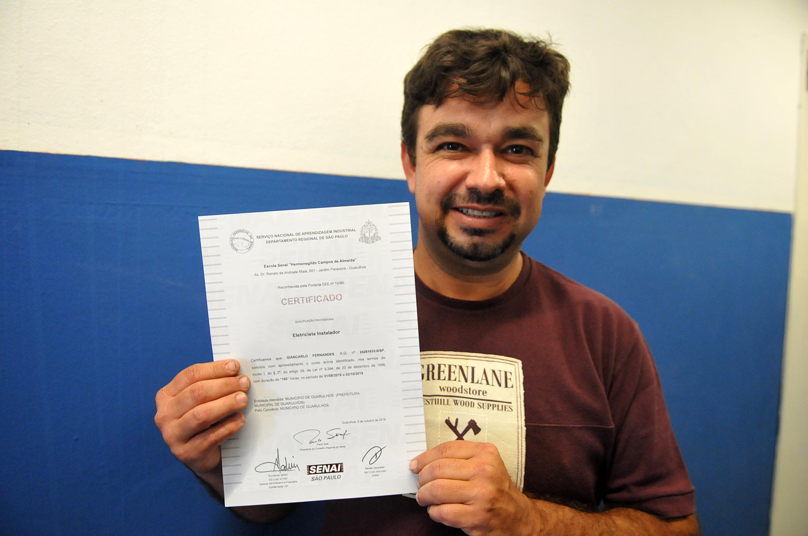 Giancarlo Fernandes, de 43 anos, comemorou, além do recebimento do certificado, a conquista de um novo emprego. "Eu estava desempregado há quase um ano e graças aos conhecimentos do curso já arrumei um emprego na área, em uma empresa que trabalha com instalação de geradores elétricos. Agora vou continuar estudando e fazer o curso de comandos elétricos, também da Prefeitura. O que eu tiver oportunidade de fazer, de me dedicar, quero fazer", afirmou.