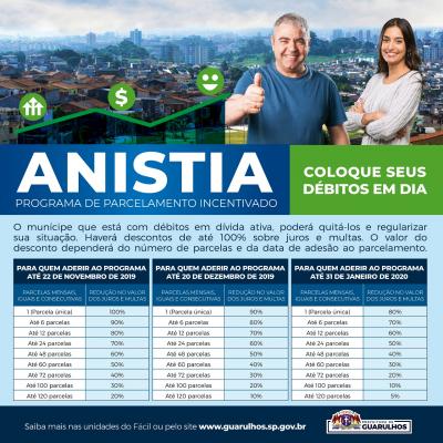 A primeira fase do Programa de Parcelamento Incentivado (PPI) já está disponível e possibilita, até o dia 22 de novembro, desconto de até 100% em juros e multas sobre dívidas ativas existentes com a administração municipal e o Serviço Autônomo de Água e Esgoto (Saae) de Guarulhos, vencidas até 31 de dezembro de 2018.