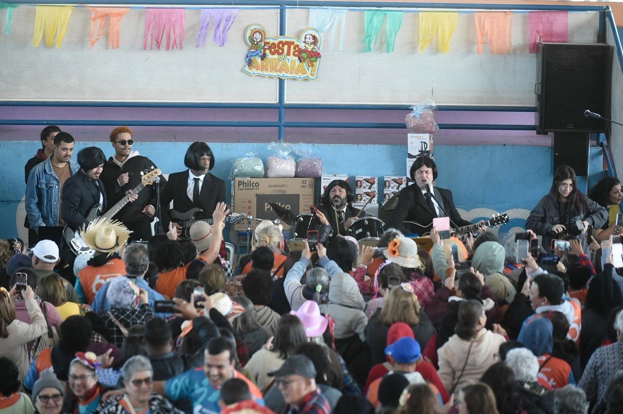 Bandeirinhas, quitutes, música, dança e muita animação tomaram conta do Arraiá da Cidadania: Respeito e Alegria na Melhor Idade, que reuniu cerca de 1.500 idosos dos 43 polos do projeto Movimento 60+ no CEU Bonsucesso, no sábado (5). Promovida pela Prefeitura de Guarulhos, a ação buscou a promoção do envelhecimento ativo e saudável, a integração e a socialização da turma da melhor idade em um momento de lazer e de valorização cultural.