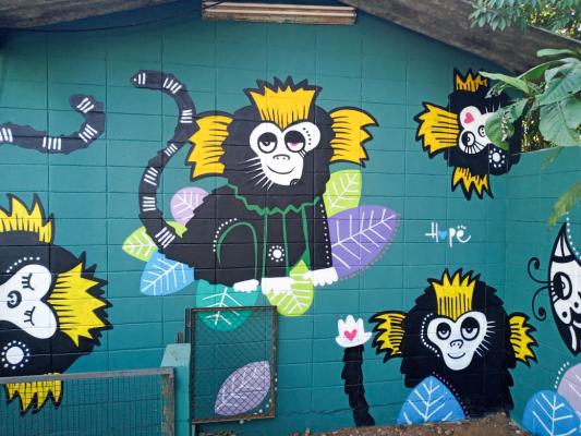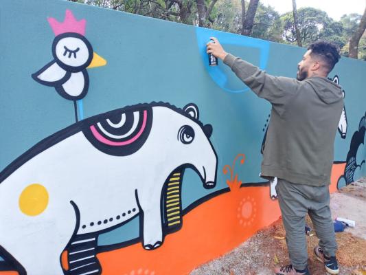 Há cerca de um mês, o artista guarulhense de fama internacional Elvis Mourão dedica parte dos seus dias para grafitar desenhos temáticos nos muros dos diversos recintos do zoo. Logo na entrada do parque, micos coloridos dão as boas-vindas aos visitantes. Logo mais à frente, cobras, antas, pássaros, jacarés e leões enfeitam os caminhos que percorrem todo o parque.