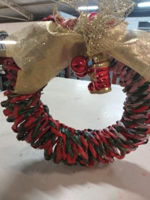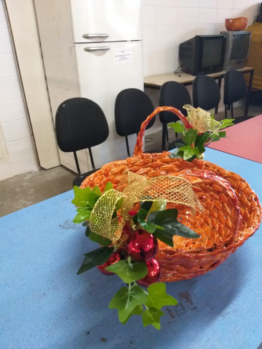 Entre os produtos comercializados estão garrafas decorativas, cestas natalinas e guirlandas de Natal, confeccionadas com materiais reciclados como jornais e garrafas de vidro. Os produtos serão comercializados a preços populares.