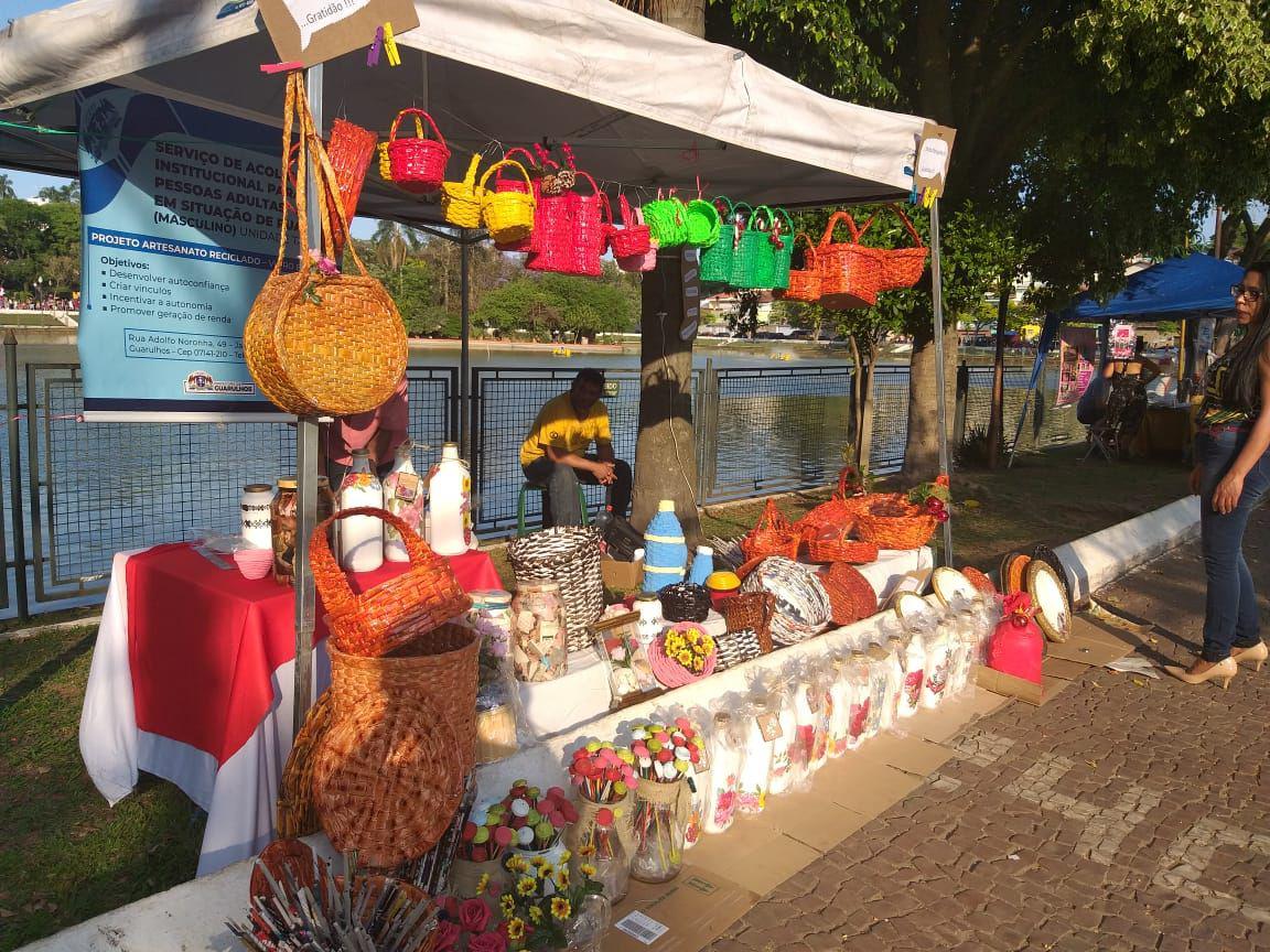Um grupo de seis assistidos pelo Serviço de Acolhimento Institucional Adulto Masculino – Taboão, conhecido como Casa de Acolhimento Taboão,participam da feira do Natal Iluminado das Artes, da Secretaria de Cultura de Guarulhos, neste sábado e domingo, dias 7 e 8, no Complexo Cultural do Lago de Vila Galvão (Lago dos Patos). Eles irão expor e vender peças de artesanato que realizaram durante as oficinas do projeto de Geração de Renda e Autonomia para Pessoas Acolhidas, ex-moradores de rua.