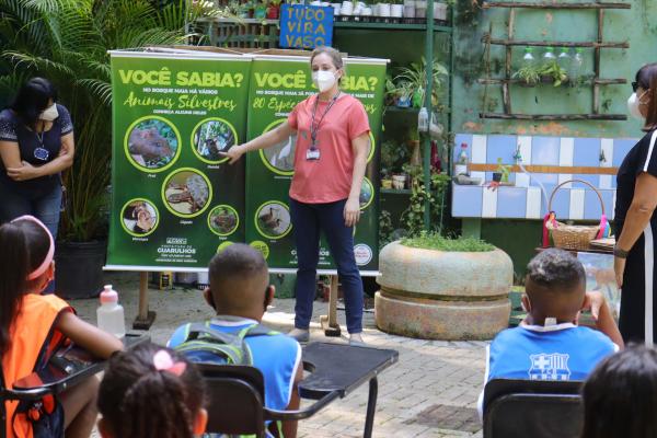 Antes do início da caminhada a garotada aprendeu sobre as espécies de animais que habitam o parque em um bate-papo com educadores da Secretaria de Meio Ambiente, que também abordou as características do lobo-guará, espécie brasileira ameaçada de extinção.