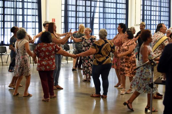 Márcia Maria, de 72 anos, diz que frequenta os CCIs há tanto tempo que nem se recorda mais. "Eu amo esses eventos. Faz três anos que eu estou viúva e os bailes me alegram o coração, e as outras atividades do CCI também. É uma terapia pra mim. Melhor do que ficar em casa, né?", brinca.
