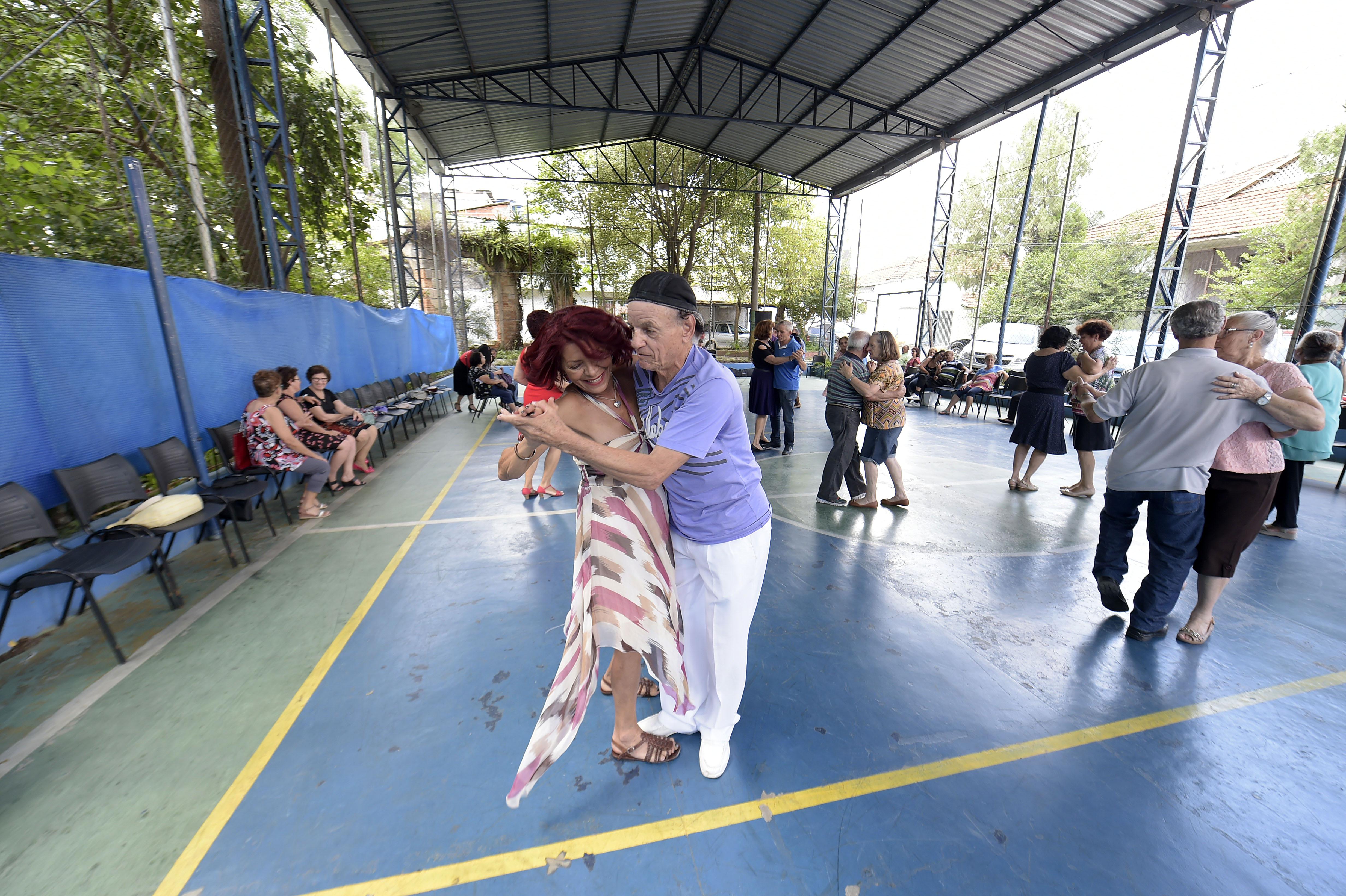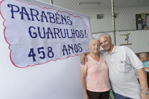 Juntos há 11 anos, o casal Enesia Carvalho Reis, 80 anos, e Antônio Augusto Barbosa dos Santos, 78, se conheceu em um dos bailes do CCI em 2007. Ambos nascidos em Minas Gerais foram morar em São Paulo e depois se mudaram para Guarulhos onde cada um formou sua família e criou seus filhos. Anos depois, enviuvaram e passaram a frequentar o baile. “Criei meus três filhos aqui e gosto muito de Guarulhos. É uma cidade ótima,” afirmou Enesia.