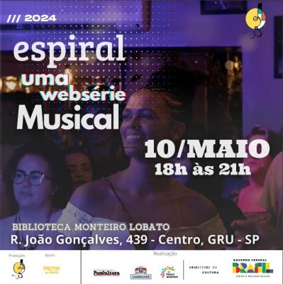 A nova edição da websérie Espiral, vernissage musical que acontecerá no dia 10 de maio, sexta-feira, das 18h às 21h, na Biblioteca Monteiro Lobato, promete reunir o público da cidade para consumir a música de artistas independentes. A entrada é gratuita e a classificação, livre.