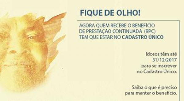 Os idosos que recebem o benefício de um salário mínimo do BPC/LOAS (Benefício da Prestação Continuada da Assistência Social/ Lei Orgânica da Assistência Social) têm até o dia 29 de dezembro (sexta-feira) para se cadastrar no Cadastro Único para Programas Sociais (CadÚnico), do Governo Federal.