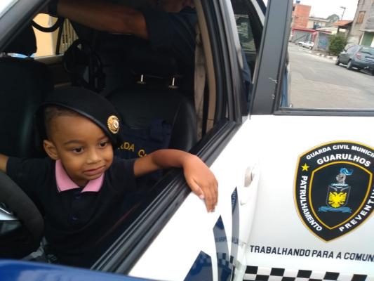 A última segunda-feira (18) foi muito especial para o pequeno Gabriel, que completou quatro anos de idade e realizou um grande sonho. O garoto, que é superfã da Guarda Civil Municipal (GCM) e não perde uma apresentação da corporação, ganhou um presente inesperado quando os guardas do Canil foram até sua casa, no Jardim Vila Galvão, e levaram bolo e brinquedo para comemorar com o menino.
