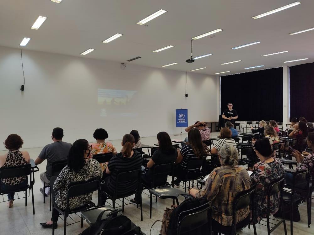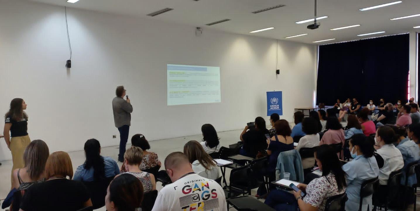 Tendo em vista o trabalho realizado em conjunto entre a SDAS e a Acnur, por meio do Posto Avançado de Atendimento Humanizado ao Migrante (PAAHM), localizado no Aeroporto de Guarulhos, um dos principais temas da capacitação foi o deslocamento forçado no Brasil e no Estado de São Paulo, principais definições legais e marcos normativos. Além disso, fizeram parte dos temas abordados a proteção dos direitos de migrantes e refugiados, garantias de acesso a serviços públicos no município e a reflexão sobre como fortalecer as estruturas existentes para melhor acolhê-los e atendê-los na cidade.