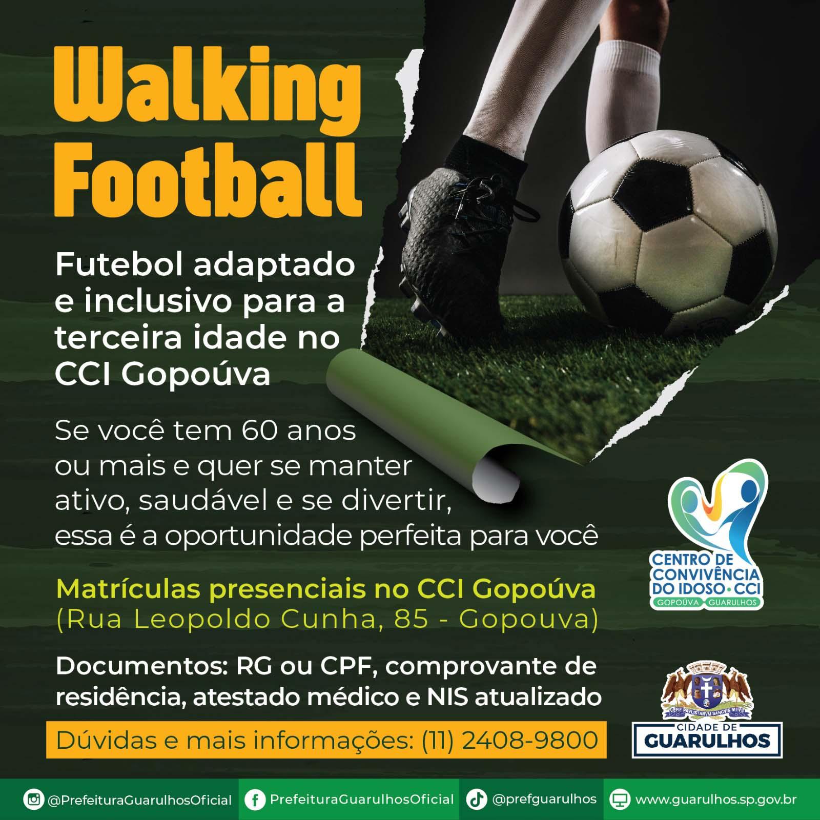 O Centro de Convivência do Idoso (CCI) Gopoúva está com inscrições abertas para as aulas de futebol adaptado e inclusivo para a terceira idade. Ofertadas em parceria com o Instituto Walking Football, as aulas são abertas para homens e mulheres e a ideia do projeto é incentivar os idosos a se manterem ativos, saudáveis e estimular a convivência social por meio do esporte.