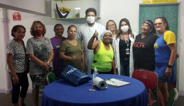 A unidade recebeu os profissionais da UBS Tranquilidade, que realizaram exame clínico nos idosos e os encaminharam para a realização de procedimento odontológico na unidade, conforme necessidade. O exame é um procedimento simples de observação que não requer instrumentos especiais, focando na busca por lesões suspeitas a fim de diagnosticar precocemente um possível câncer. Além disso, todos receberam orientações sobre as formas de prevenção.