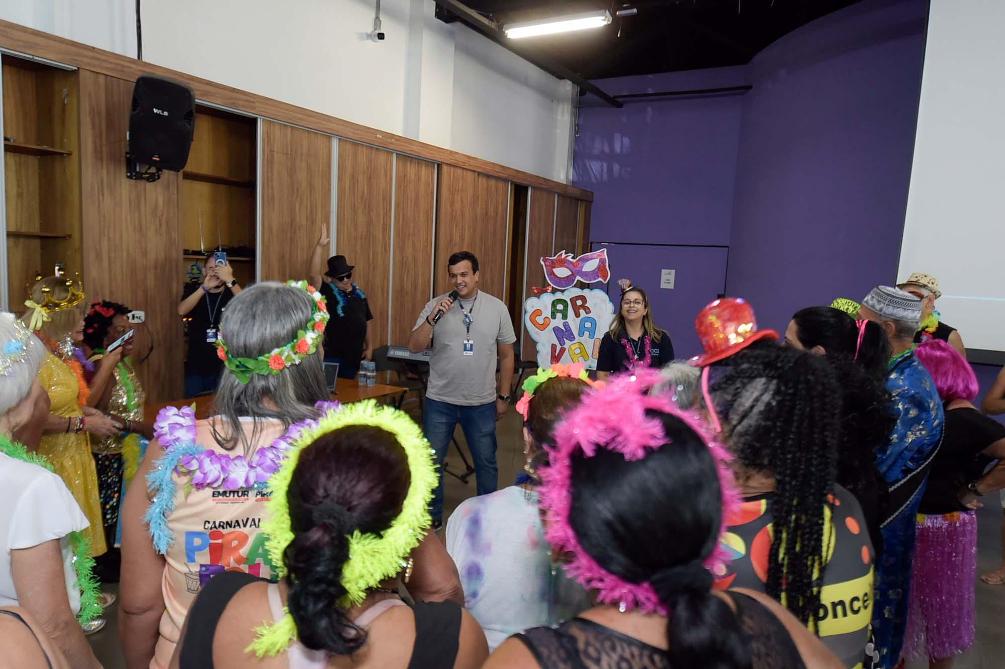 Na última quarta-feira (26) o Centro de Convivência do Idoso (CCI) Gopoúva promoveu o tradicional Carnaval da Alegria, evento que reuniu idosos de diversas regiões de Guarulhos para uma tarde de lazer, convivência e muita diversão no Adamastor. A celebração contou com música ao vivo, criando uma atmosfera animada e alegre e um café da tarde especialmente preparado pelo Restaurante Popular do Taboão com o apoio do Núcleo de Inclusão Produtiva da Secretaria de Desenvolvimento e Assistência Social.