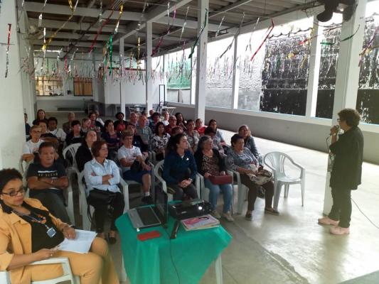 Um público de mais de 40 pessoas, da turma da Melhor Idade (acima de 60 anos), assistiu na manhã desta sexta-feira (22) a palestra sobre “A mulher e a Aids na 3ª Idade – Quebrando Preconceitos”, no CCI Santa Mena. O tema foi tratado pela terapeuta corporal holística, Ivone Valentim. Os usuários do equipamento participaram ainda de uma tarde dançante, animada por um DJ da Secretaria de Cultura que tocou ritmos de várias épocas, e puderam fazer gratuitamente limpeza de pele e maquiagem, oferecida pela Droga Raia .