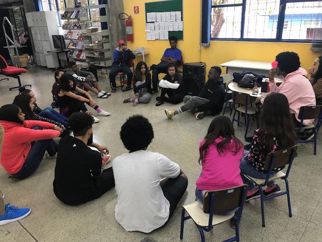 Durante a oficina, o professor de Hip Hop, carinhosamente conhecido como Zulu, fez um bate papo sobre a origem e importância desse movimento cultural no Brasil e no mundo. Na sequência com a aula prática foram apresentados alguns passos fundamentais do estilo, que os adolescentes acompanharam com facilidade.