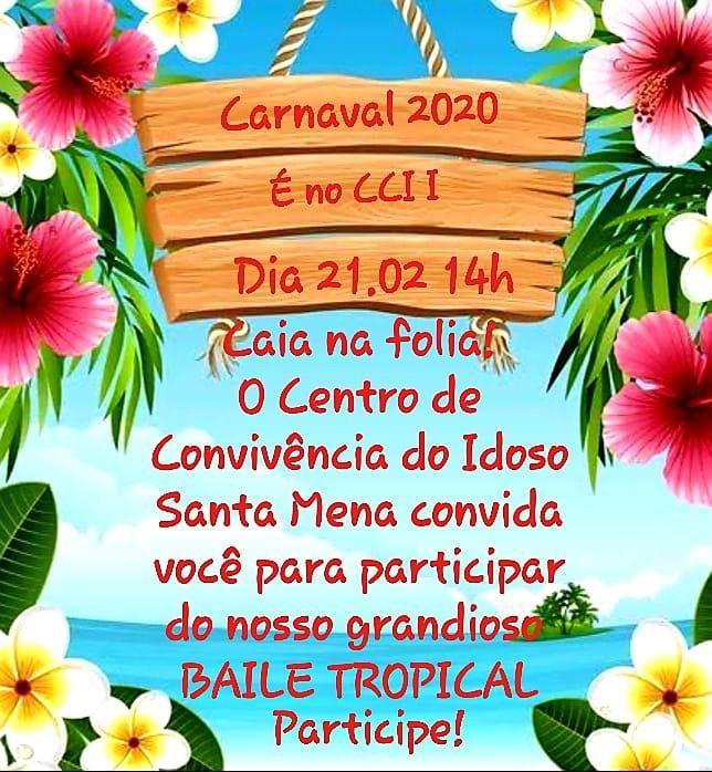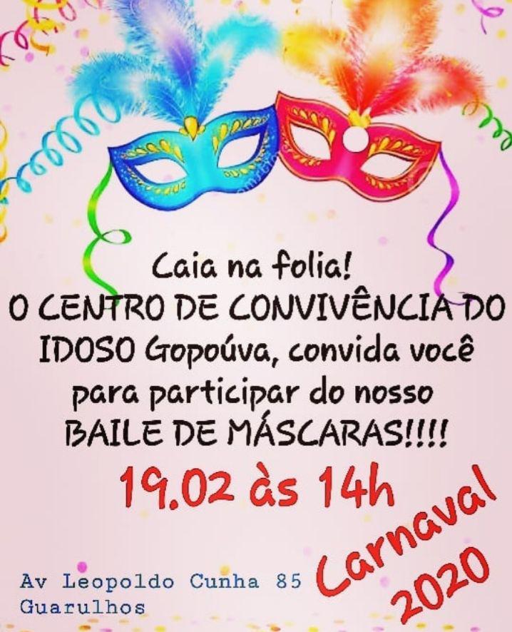 A turma da melhor idade (acima de 60 anos) já está esquentando os tamborins e se preparando para participar dos dois Bailes de Carnaval gratuitos nos Centros de Convivência do Idoso (CCI) de Guarulhos. No próximo dia 19 (quarta-feira), a unidade Gopoúva sediará o Baile de Máscaras e, no dia 21 (sexta-feira), será a vez do Baile Tropical, no Santa Mena. As folias começarão às 14h e estão previstos concursos de fantasia nos dois bailes. O ingresso para participar precisa ser retirado com antecedência nas unidades.