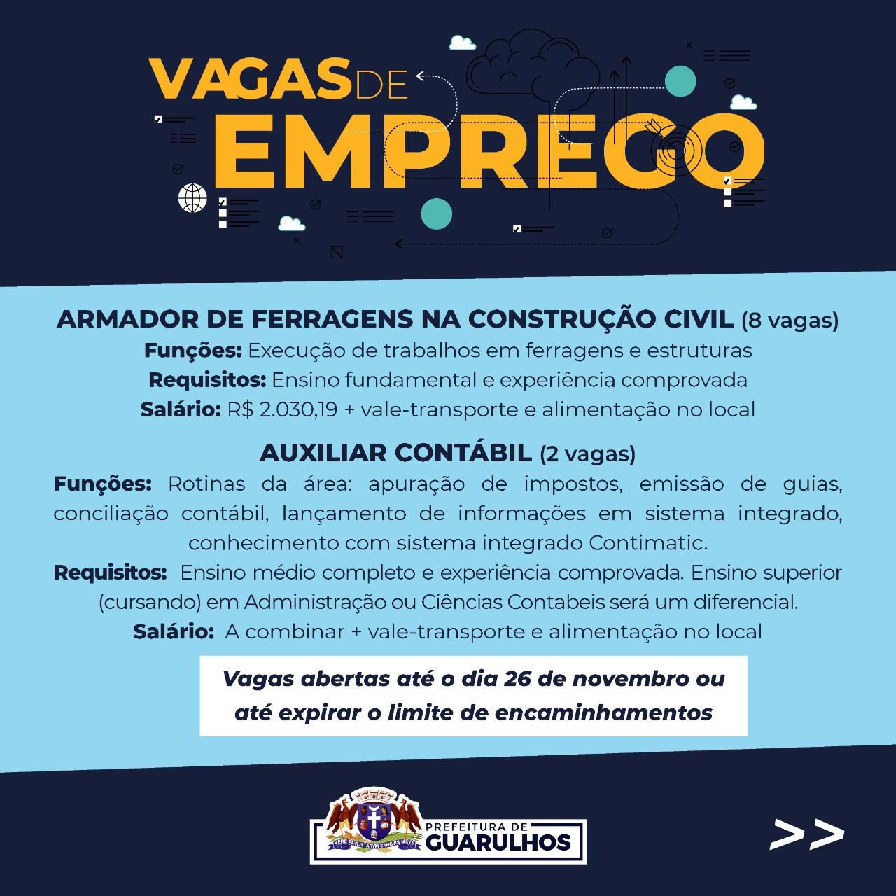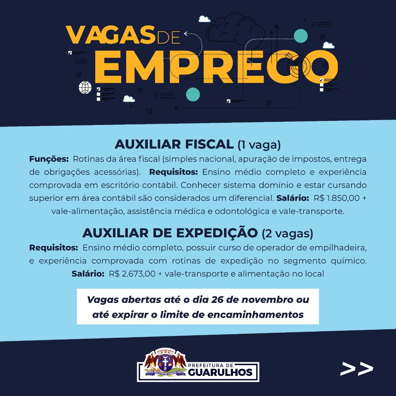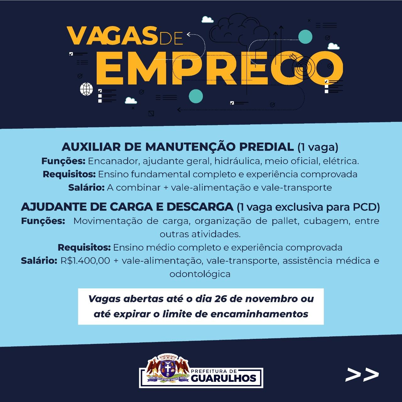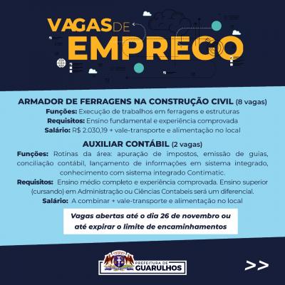 Vagas aberta até o dia 26 de novembro ou até expirar o limite de encaminhamentos