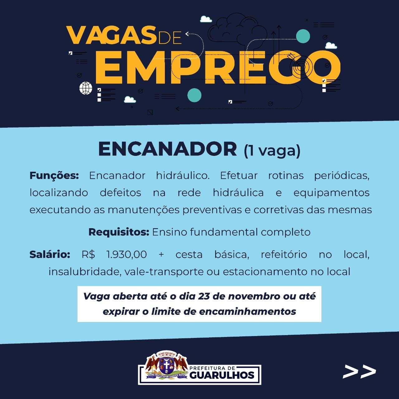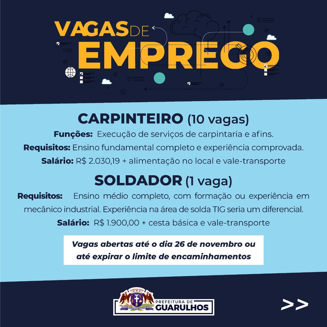 Vaga aberta até o dia 23 de novembro ou até expirar o limite de encaminhamentos