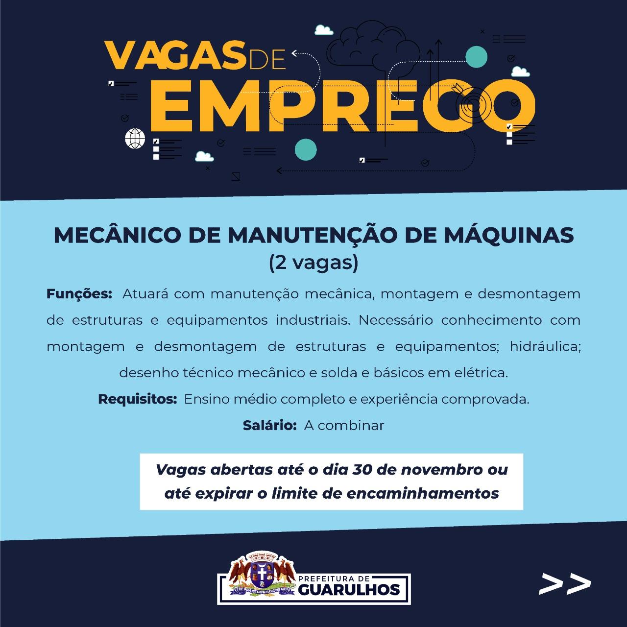 MECÂNICO DE MANUTENÇÃO DE MÁQUINAS - 2 vagas