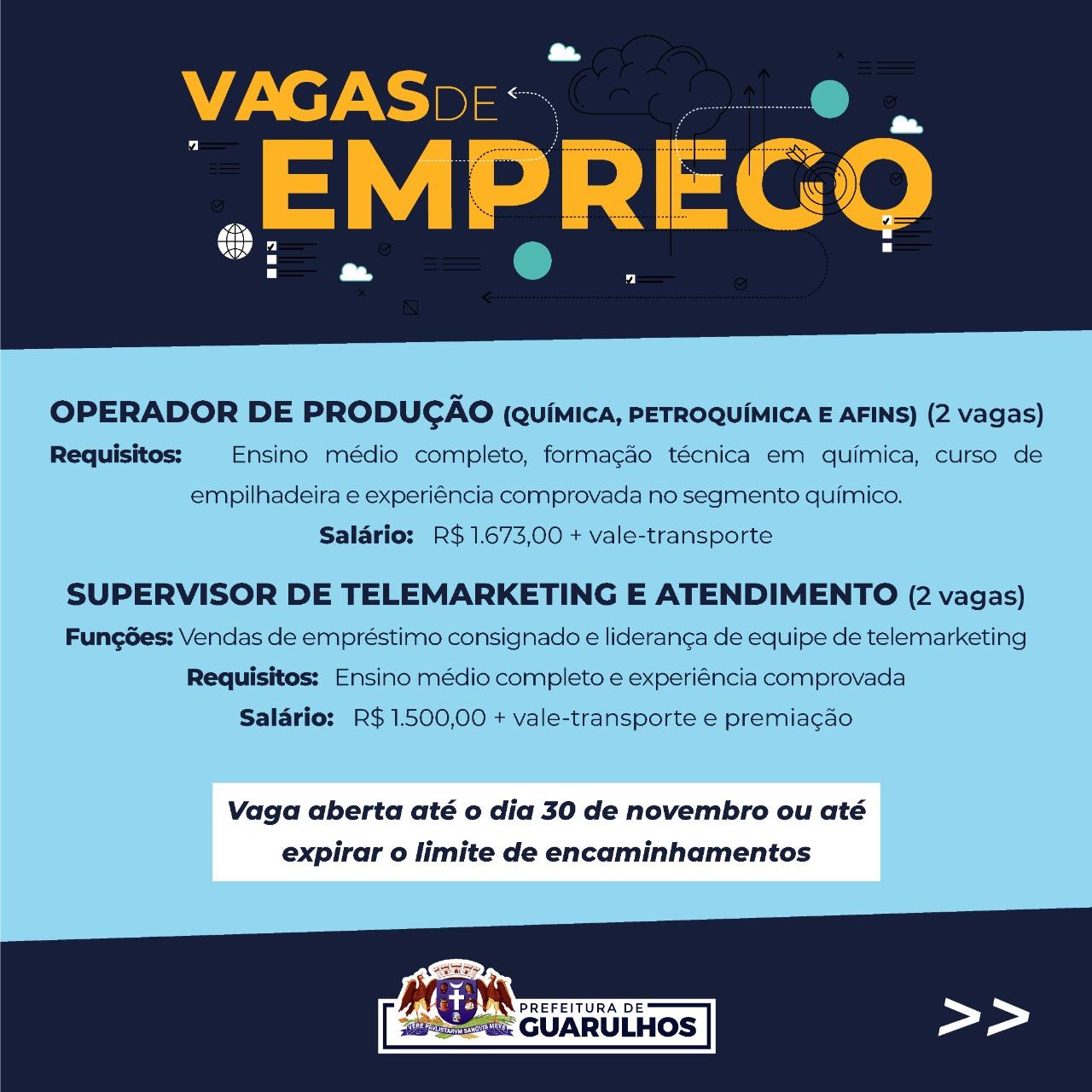 Requisitos: ensino médio completo e experiência comprovada.