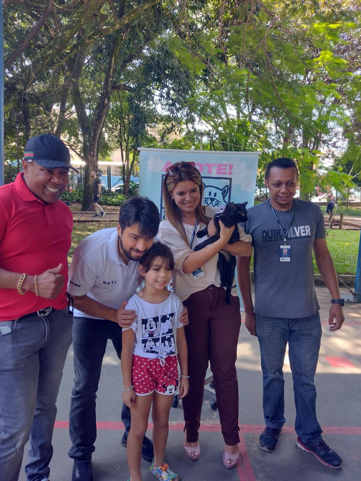 Amora, felina adulta de cor preta, é um dos animais adotados durante o evento. “Foi amor à primeira vista. Essa questão de preconceito com animais pretos é uma bobagem ultrapassada”, disse a corretora de imóveis Vera Lucia Bonfim, 56 anos, que compareceu à feirinha junto com sua neta, Giovanna Mendes Bonfim Rodrigues, de sete. A dupla recebeu congratulações do prefeito Guti durante sua passagem pelo evento. “Parabéns pela escolha. Tenho certeza de que a Amora será muito feliz com vocês”, disse.