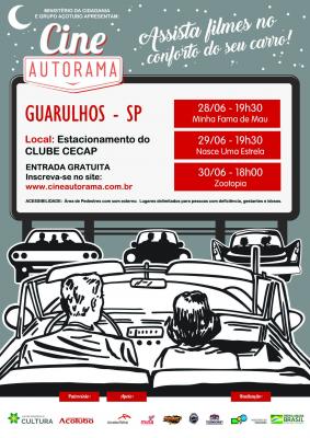 O Projeto Cine Autorama chega a Guarulhos neste fim de semana com sessões gratuitas dos filmes “Minha Fama de Mau” na sexta-feira (dia 28, às 19h30), “Nasce Uma Estrela” no sábado (dia 29, às 19h30) e “Zootopia” no domingo (dia 30, às 18h30), no estacionamento do Clube Cecap. A iniciativa, que conta com o apoio da Prefeitura de Guarulhos, tem como um de seus objetivos exibir ao ar livre grandes clássicos do cinema, sucessos recentes, nacionais e estrangeiros, além de curtas metragens, que poderão ser apreciados pelo público no conforto do próprio carro.