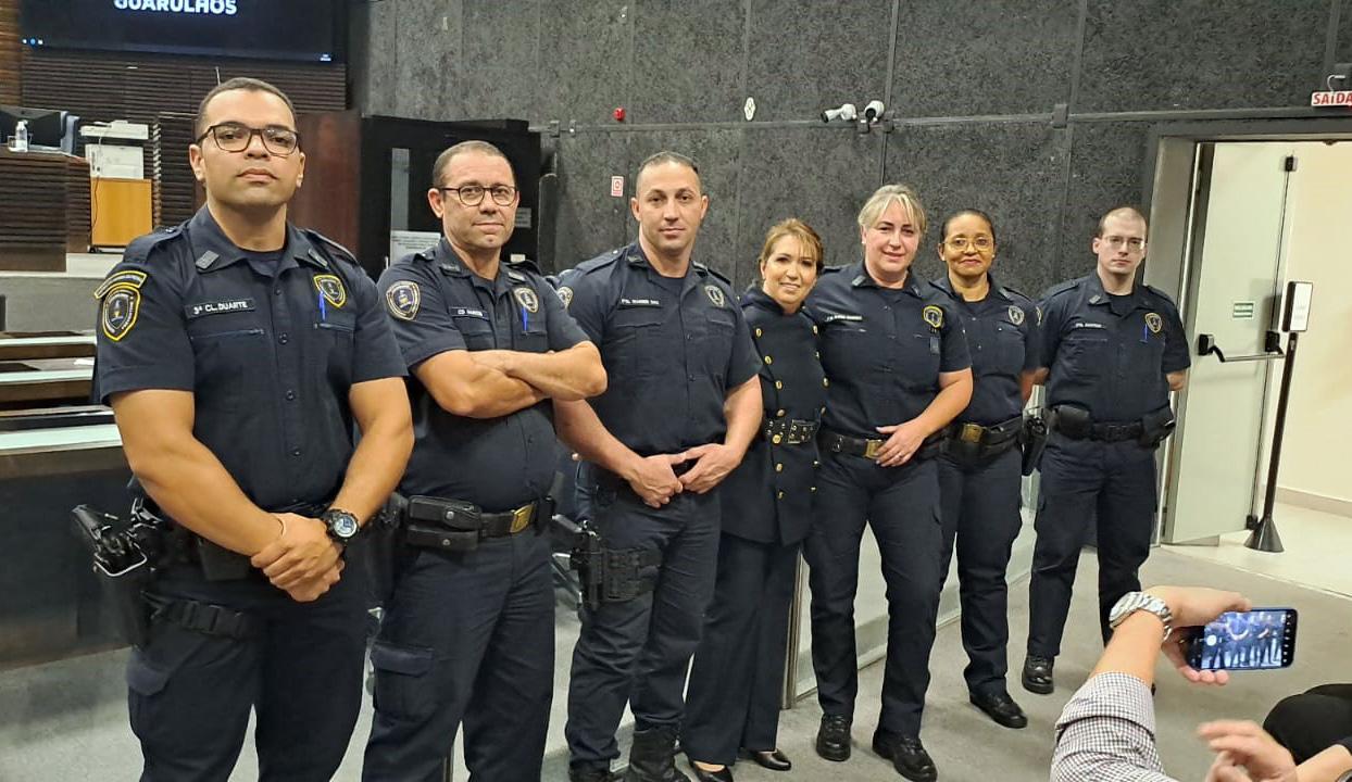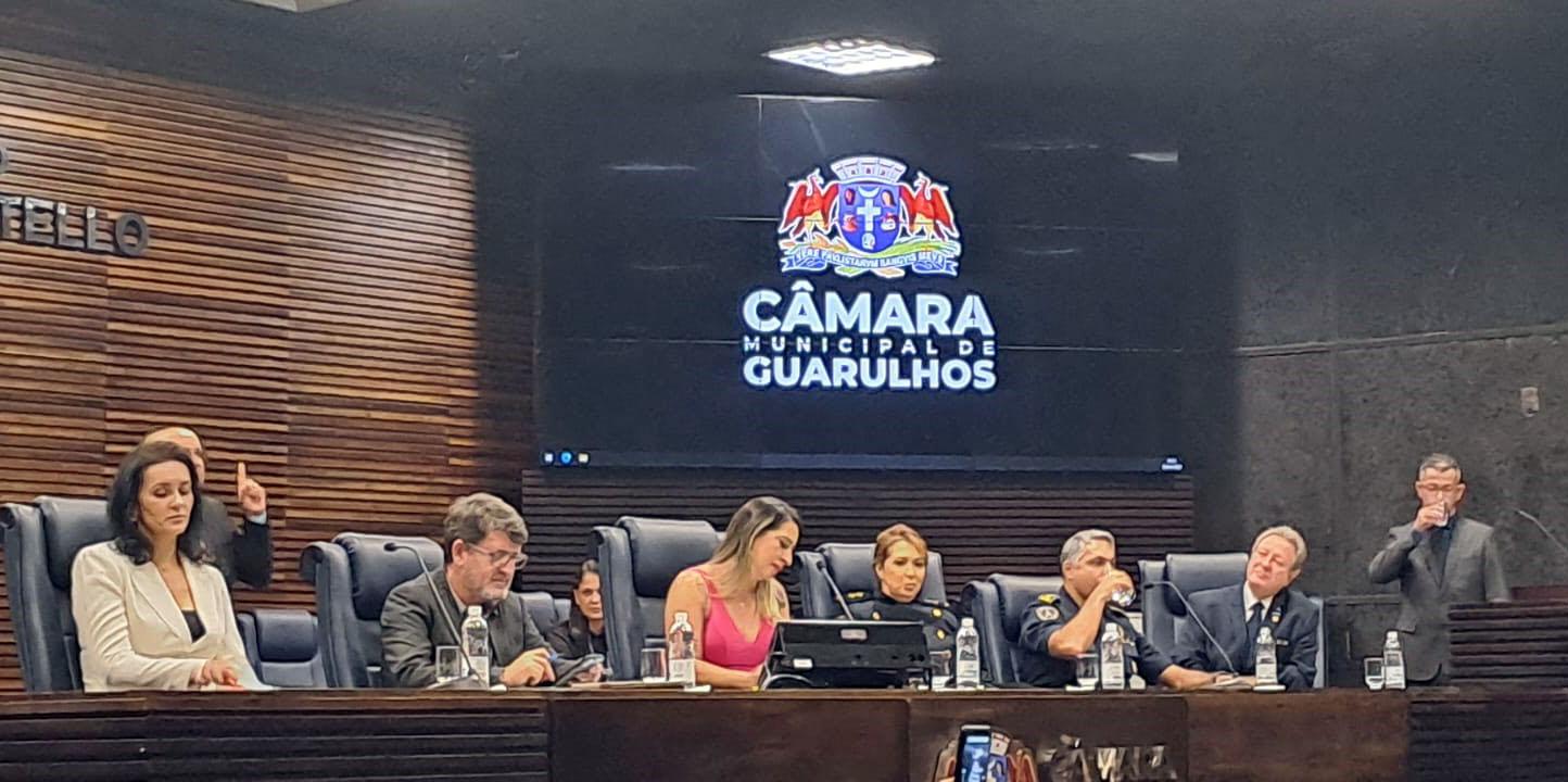 A comandante da Patrulha Maria da Penha da Guarda Civil Municipal (GCM) de Guarulhos, Darcy Maria Feitosa, foi agraciada na noite de sexta-feira (28) com o título honorífico de cidadã guarulhense. A cerimônia ocorreu na Câmara Municipal com a presença de autoridades da corporação, vereadores e representantes da Defensoria Pública do Estado de São Paulo, da Delegacia da Mulher e da Vara da Infância e da Juventude.