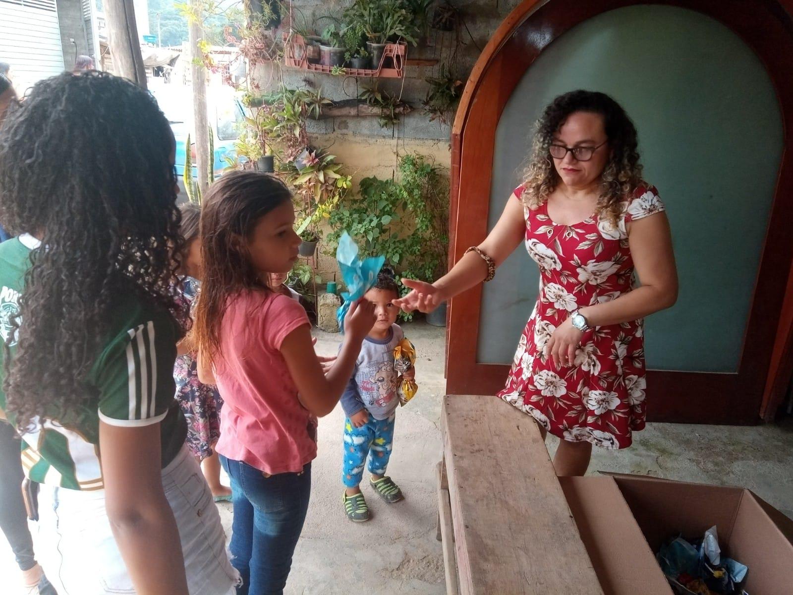 A equipe orientou as famílias sobre o exercício de cidadania e o acesso aos equipamentos públicos que estão à disposição, como o Cras, além dos benefícios dos programas socioassistenciais que eles podem solicitar. Além disso, 80 ovos de chocolate foram entregues às crianças do local.