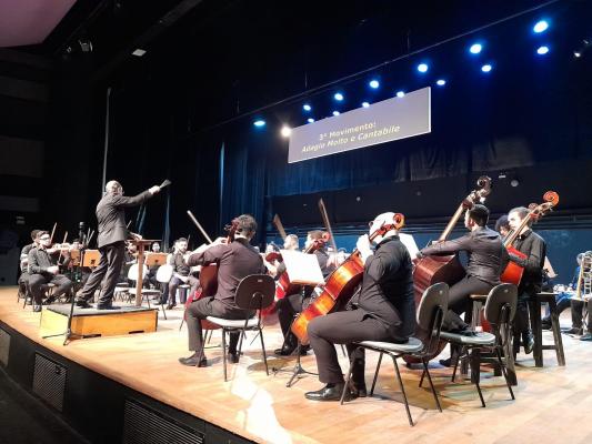Sob a regência de seu diretor artístico, o maestro Emiliano Patarra, o grupo de jovens músicos recebeu os renomados solistas Thayana Roverso (soprano), Juliana Taino (mezzo-soprano), Allan Faria (tenor) e Vinícius Atique (barítono), além de 150 cantores de quatro grupos parceiros: o Collegium Musicum de São Paulo, o Madrigal Vivace de Jundiaí, o Vocal Lírico CoraLeste e o Coral “a tempo”, somando mais de 200 músicos no palco do teatro aniversariante. Entre o terceiro e quarto movimentos da sinfonia o público recebeu com muitos aplausos os convidados, que abrilhantaram a sonoridade da orquestra com suas vozes.
