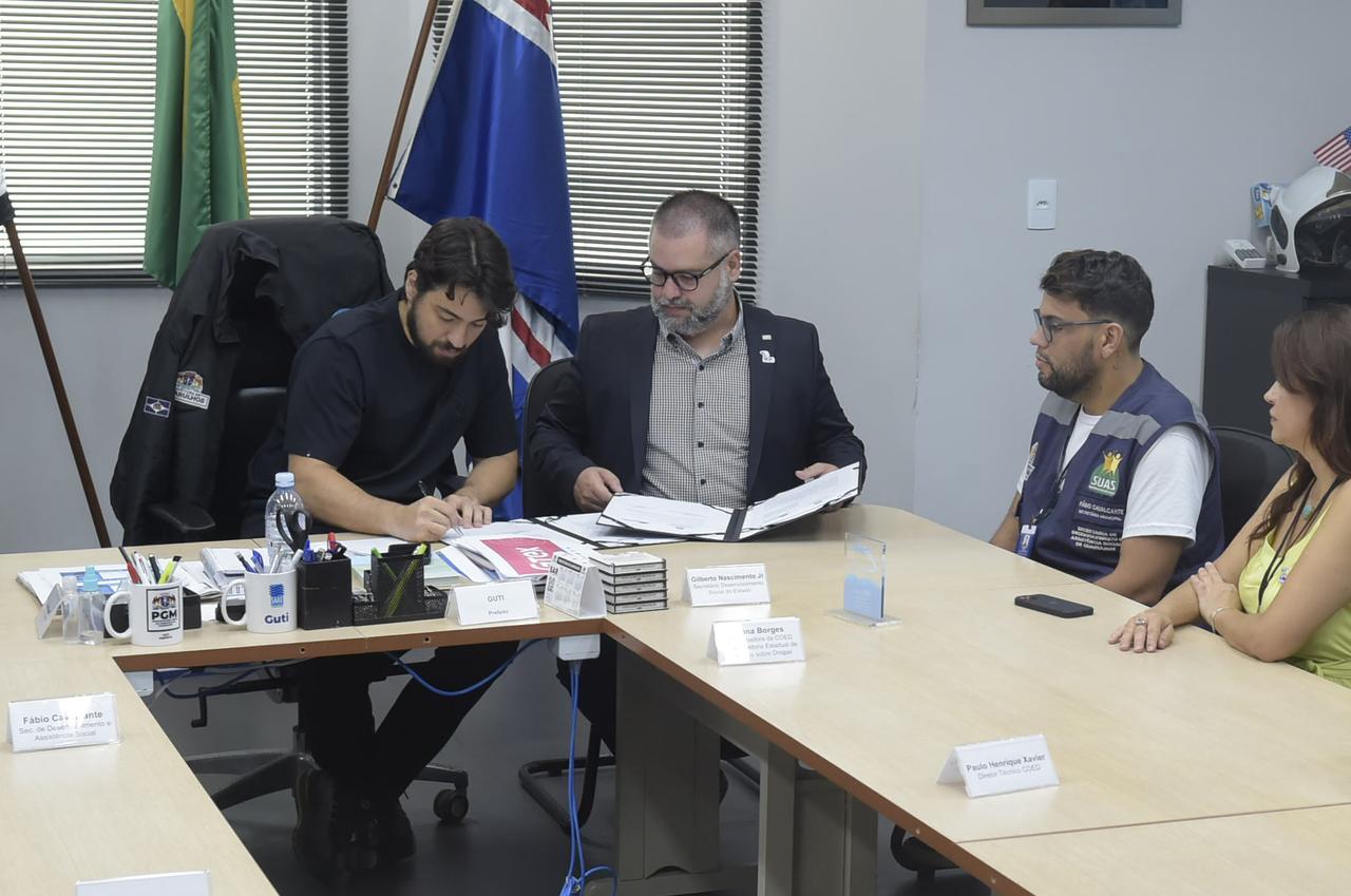 A cidade de Guarulhos ganhará até o final do primeiro semestre de 2023 uma inédita residência terapêutica para dependentes químicos em situação de rua. O convênio com o governo do Estado de São Paulo foi assinado nesta sexta-feira (20) pelo prefeito Guti, ao lado do secretário municipal de Desenvolvimento e Assistência Social, Fábio Cavalcante, e do secretário de Desenvolvimento Social do Estado de São Paulo, Gilberto Nascimento.