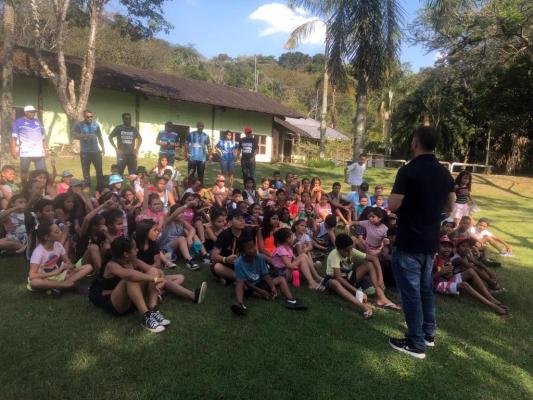 Nesta quinta-feira (21) o Horto Florestal de Guarulhos - Reserva Biológica Burle Marx, no bairro Água Azul, recebeu a visita de 90 crianças da ONG Projeto Entre Nessa Onda, em comemoração ao Dia da Árvore. A garotada foi recepcionada pelo secretário de Meio Ambiente, Thiago Surfista, e por técnicos da pasta, que promoveram um bate-papo sobre a importância da conservação de todas as espécies de seres vivos.