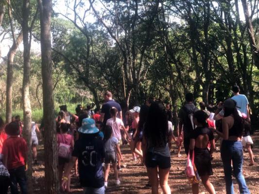 Os participantes fizeram uma pequena trilha em que conheceram algumas espécies de árvores e plantas que a reserva biológica abriga. Durante o trajeto, descobriram curiosidades sobre plantas como a samambaiaçu, arbusto nativo da Mata Atlântica que pode atingir o tamanho de uma árvore.
