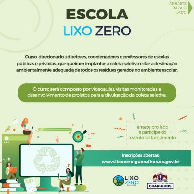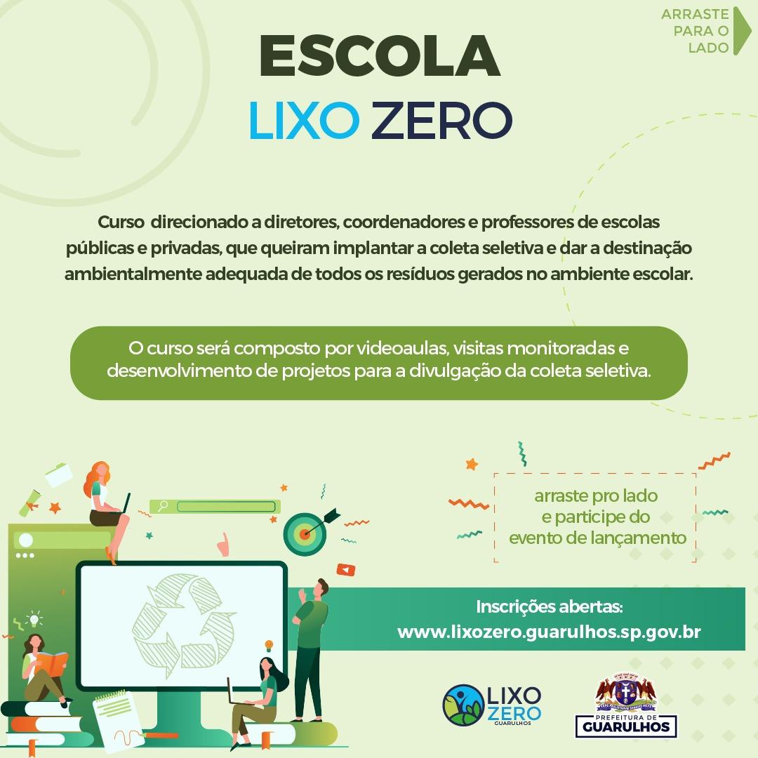O lançamento do curso híbrido Escola Lixo Zero será realizado na quinta-feira (3), às 9h, no Salão de Artes do Adamastor (avenida Monteiro Lobato, 734, Centro). As inscrições podem ser feitas pelo link https://forms.gle/pHPfeMPH236oaBJw5.