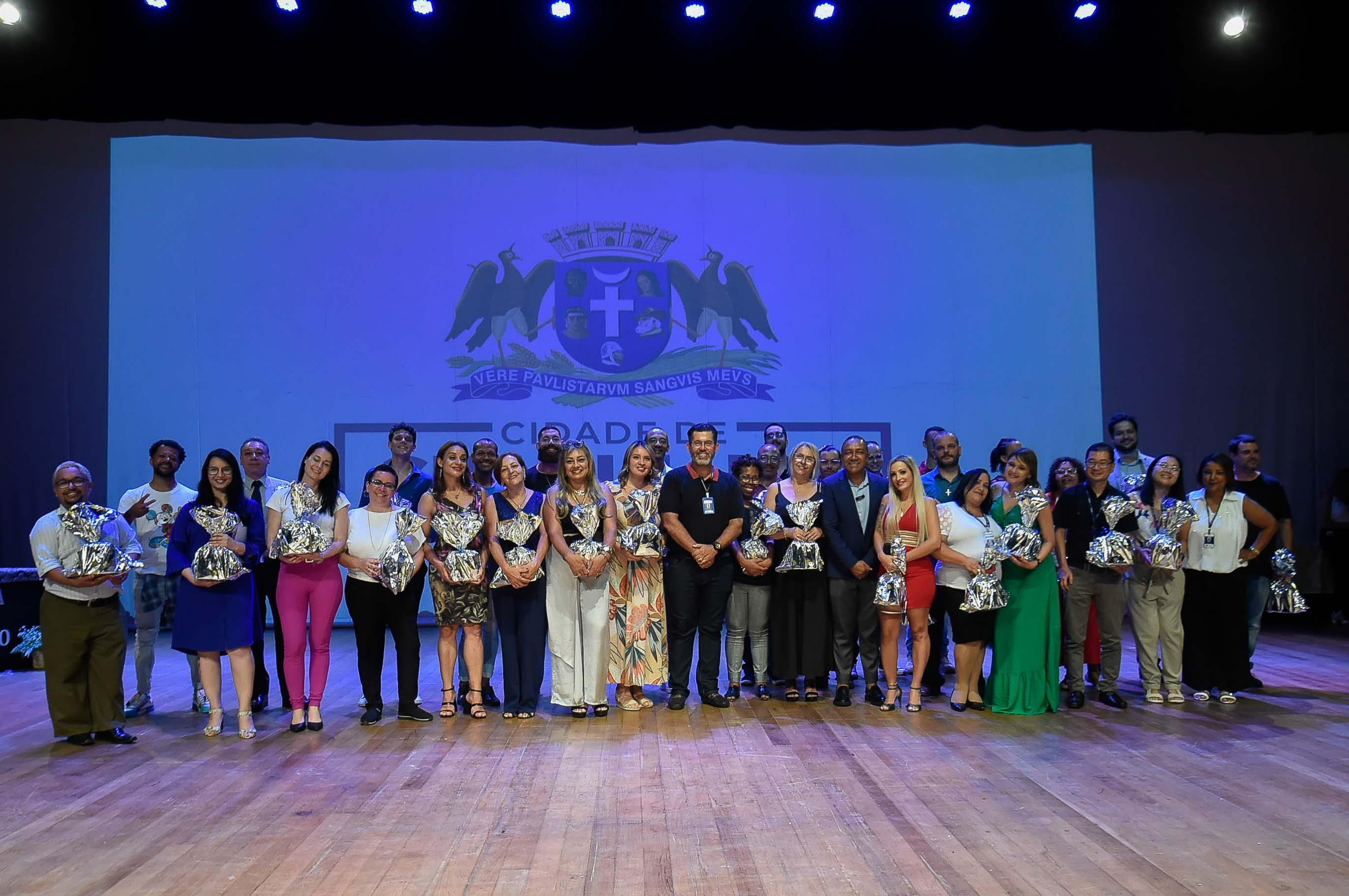 Os docentes também foram homenageados pelo trabalho desenvolvido. A ação ficou a cargo de Professor Jesus, que os chamou ao palco nominalmente e pediu uma salva de palmas a todos os presentes.