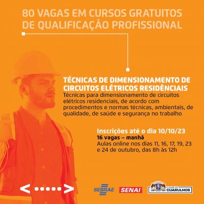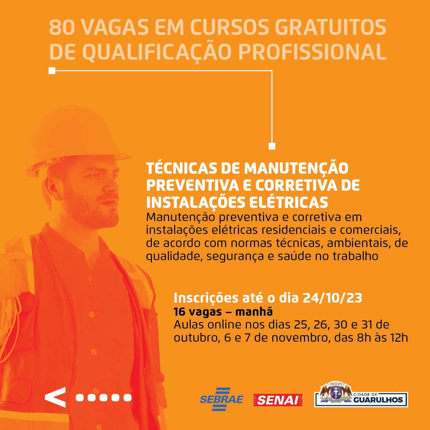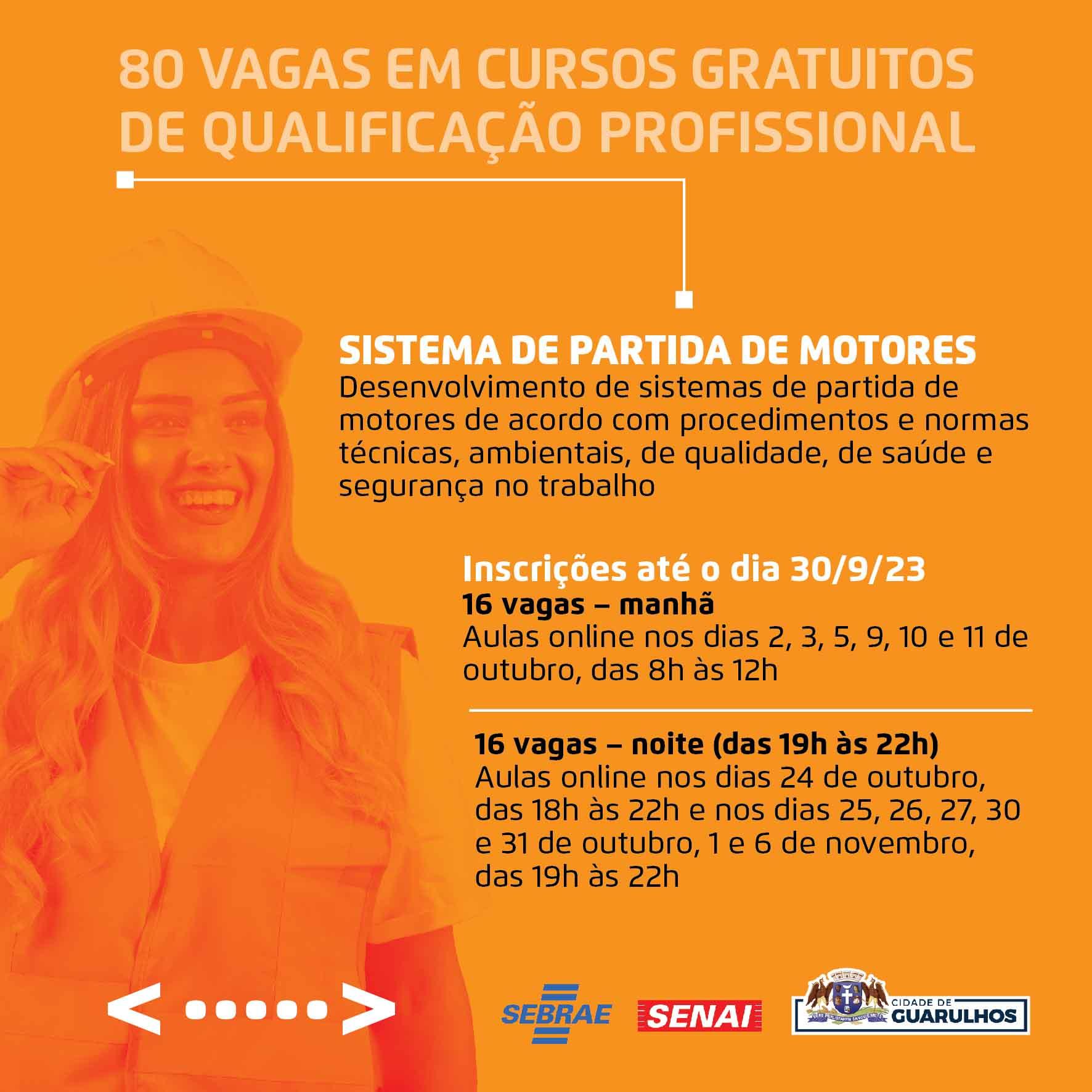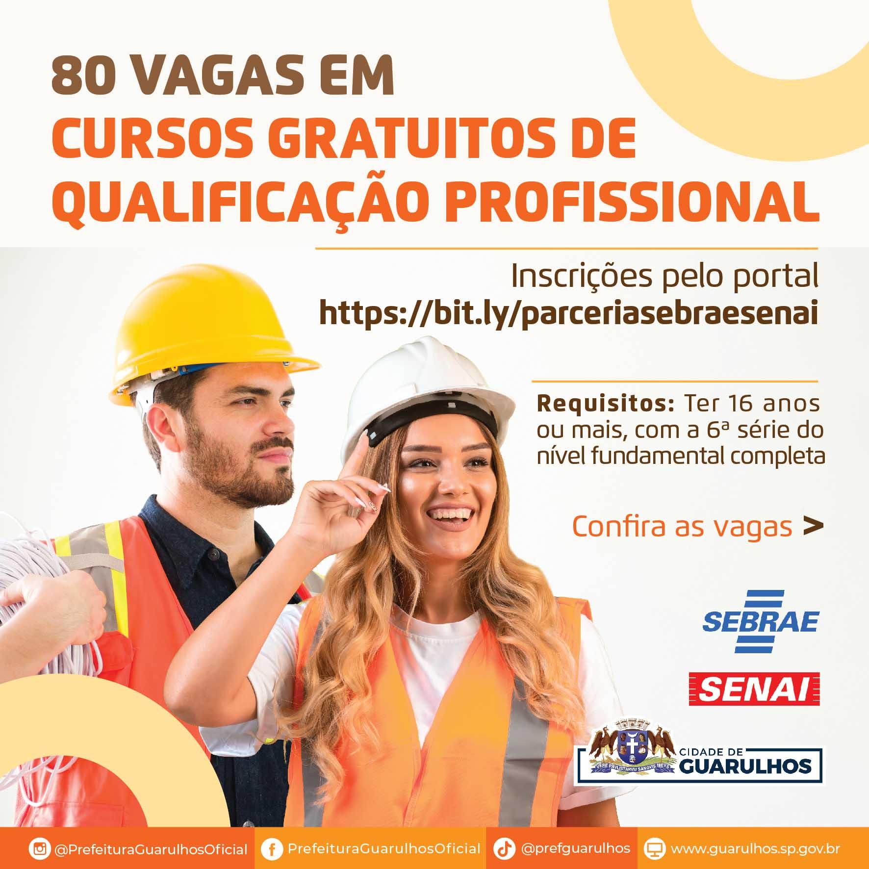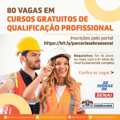 A Prefeitura de Guarulhos abriu inscrições para 80 vagas em cursos de qualificação profissional gratuitos, oferecidos em parceria com o Senai e o Sebrae. Os interessados devem acessar o portal https://bit.ly/parceriasebraesenai e preencher o formulário.