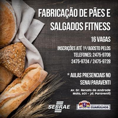 O curso de fabricação de pães e salgados fitness, que acontecerá das 8h às 12h, irá ensinar o processo de produção de pães e salgados fitness, modelagem, recheio, fermentação, forneamento e armazenamento, além de cálculo de balanceamento de formulações, etapas do processo de fabricação (cozida, fermentada, sem liga), higiene pessoal e segurança no trabalho.