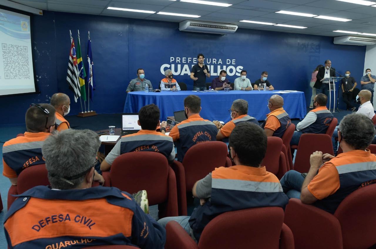 A Prefeitura de Guarulhos lançou nesta segunda-feira (6) o Plano Preventivo de Proteção e Defesa Civil (Plano Verão) em solenidade no Paço Municipal. O objetivo é mitigar os efeitos da temporada de fortes chuvas na cidade por meio do reforço do atendimento à população que vive em áreas de risco. Nesse período, que deve terminar em março, há um monitoramento constante dos índices pluviométricos e dos locais mais propícios a alagamentos, deslizamentos, desmoronamentos e solapamentos.