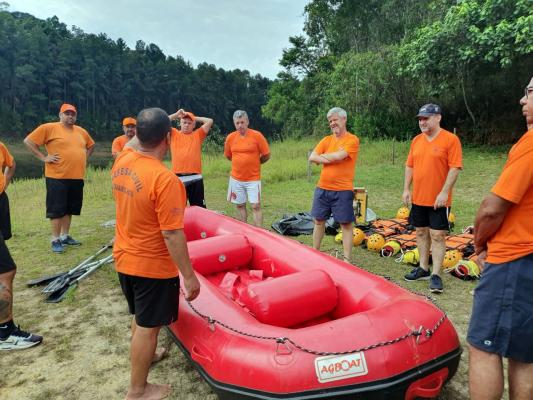 A Coordenadoria Municipal de Proteção e Defesa Civil (Compdec) de Guarulhos promoveu nesta segunda-feira (13), em uma represa do Parque Estadual da Cantareira – Núcleo Cabuçu, um treinamento para 24 agentes em atendimento a ocorrências e resgate de vítimas em enchentes. Os servidores atualizaram técnicas de travessia em cheias utilizando cabos e balsas infláveis, condutas de apoio fora da área inundada e atendimento pré-hospitalar.