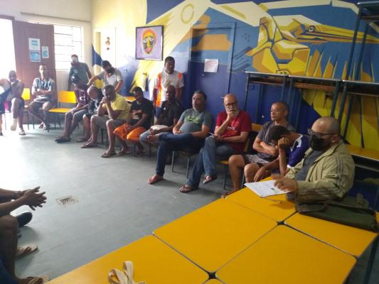 O Serviço de Acolhimento Institucional Adulto Masculino Centro reuniu nesta segunda-feira (5) cerca de 50 homens assistidos pelo equipamento para participar de uma roda de conversa sobre direitos humanos. A atividade foi contextualizada de forma cronológica, trazendo fatos importantes da história da Humanidade, culminando na importância de compreender o ser humano por meio da busca por conhecimento, como sujeito de direitos.
