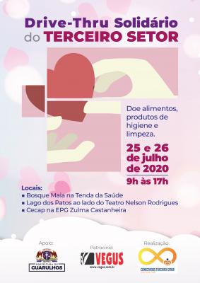 O Grupo de Conectados do Terceiro Setor promove neste sábado e domingo, dias 25 e 26, das 9h às 17h, o Drive-Thru Solidário do Terceiro Setor em três pontos de Guarulhos: Bosque Maia (Tenda da Saúde), Lago dos Patos (ao lado do Teatro Nelson Rodrigues) e Parque Cecap (na EPG Zulma Castanheira de Oliveira). São locais onde a população poderá doar alimentos não perecíveis, produtos de higiene e de limpeza que serão distribuídos à população carente.