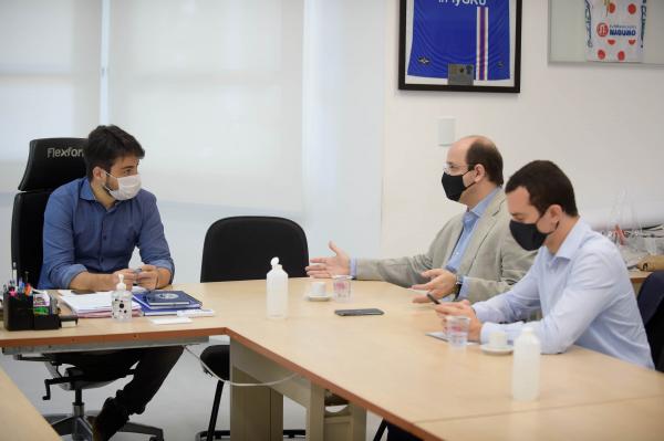O prefeito Guti recebeu na manhã desta quarta-feira (16) o secretário estadual de Educação, Rossieli Soares. Ele veio a Guarulhos para visitar algumas escolas estaduais. No encontro, eles trataram de alguns temas relacionados à área da educação e reforçaram o compromisso de manter o calendário de retomada de aulas a partir do início de janeiro.