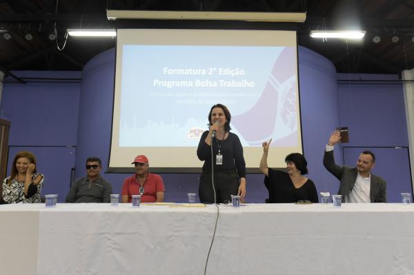 O Adamastor Centro recebeu na manhã desta terça-feira (19) a formatura de cerca de 90 alunos do programa Bolsa Trabalho, oferecido pela Prefeitura de Guarulhos e viabilizado pela Secretaria do Trabalho. No programa, que tem por objetivo proporcionar ocupação, qualificação profissional e renda para a população, os alunos participam de aulas teóricas sobre jardinagem e pequenos reparos domésticos em um dia da semana e, nos outros quatro, realizam atividades práticas em uma das secretarias municipais, além de receberem bolsa-auxilio, vale-transporte e vale-alimentação.