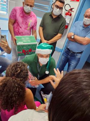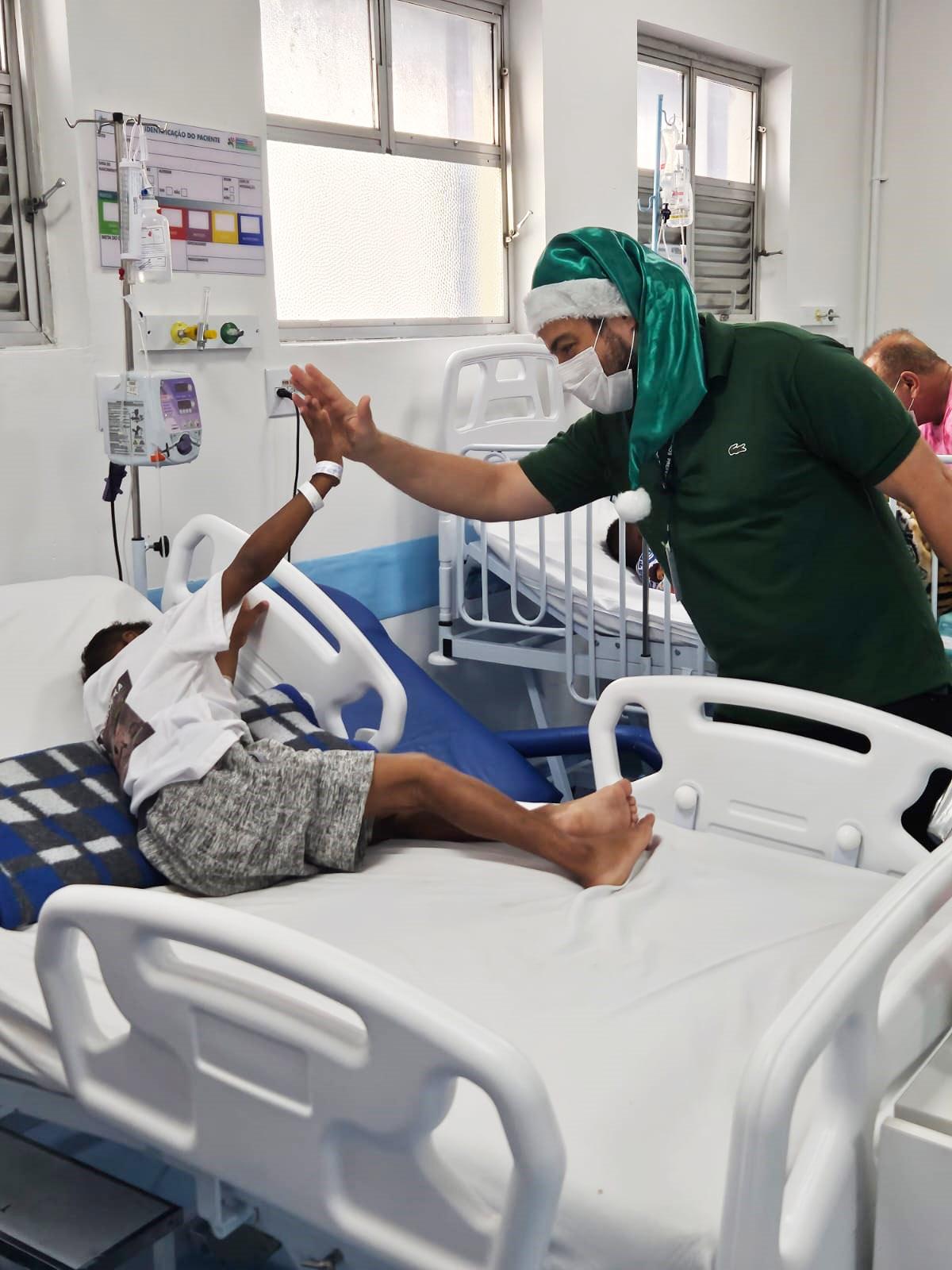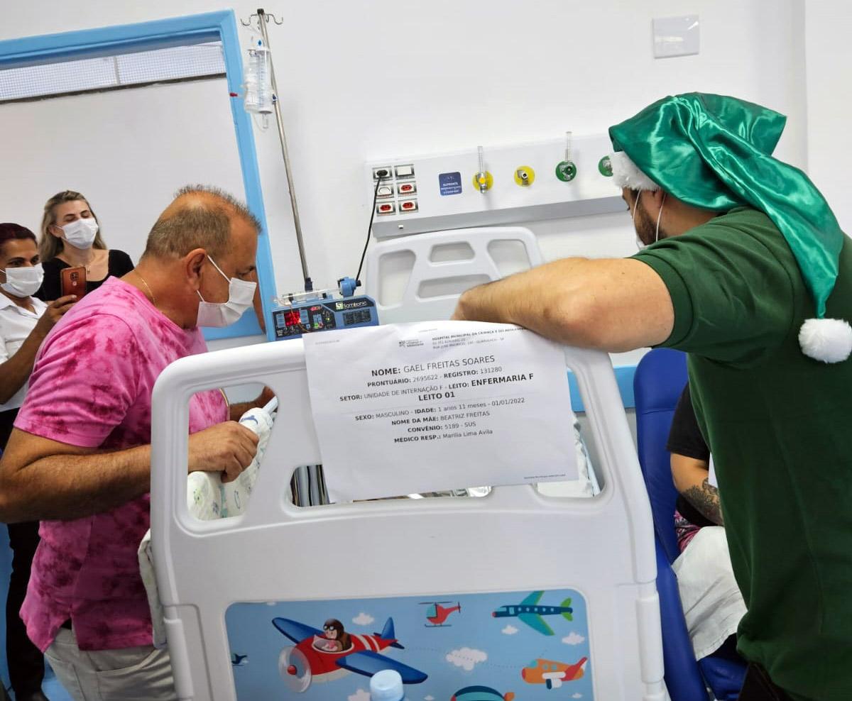 O pequeno Pedro, de sete anos, não se conteve de alegria ao receber das mãos do prefeito Guti um caminhãozinho como presente de Natal na manhã desta segunda-feira (25). Internado no Hospital da Criança e do Adolescente (HMCA), o garoto era só sorrisos e agradecimento ao grupo que todos os anos, desde o Natal de 2017, vai à instituição de saúde entregar presentes.